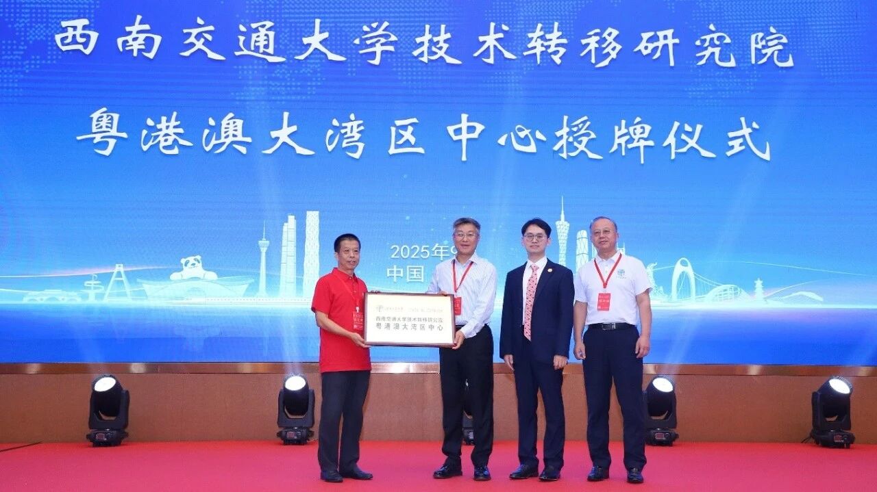 技术转移研究院院长张骏作《以科创园建设为抓手,开展有组织的“共生”式成果转化,全面支撑新质生产力发展》专题报告。在与会领导、嘉宾的见证下,“西南交通大学技术转移研究院粤港澳大湾区中心”正式揭牌成立。