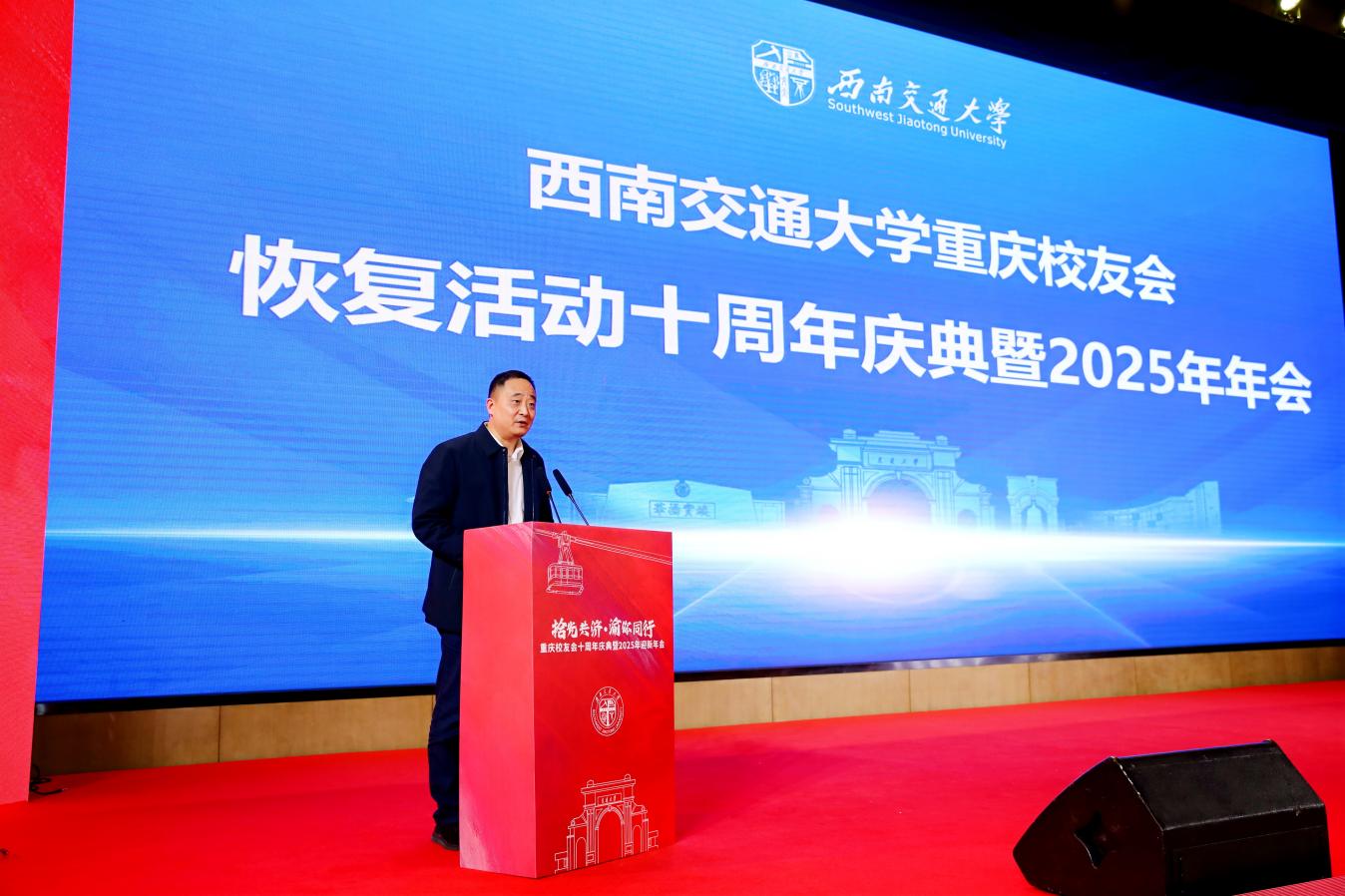2025年12月6日,西南交通大学重庆校友会恢复活动十周年庆典暨2025年迎新年会在重庆市举行。校党委副书记高平平带队出席本次活动。