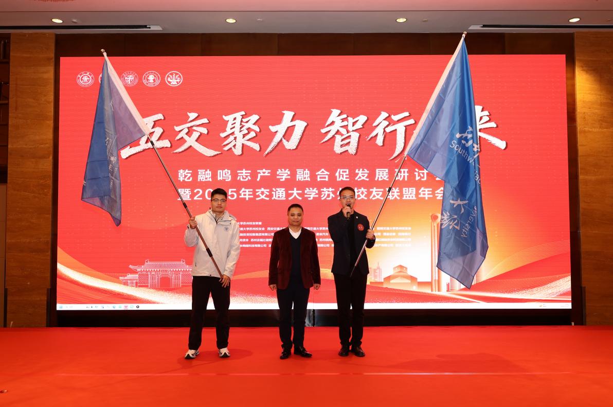 西南交通大学苏州校友会参与“五交产学融合接力计划”,五校代表共同启动该计划。大会还进行了西南交通大学校旗入场仪式。