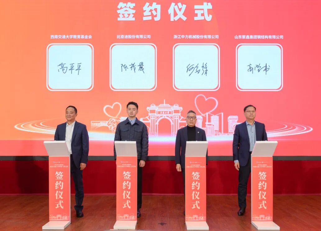 12月18日,“聚力拓源 赋能强校”西南交通大学筹资工作会议在犀浦校区交运楼418会议室举行。校党委书记余敏明,校长闫学东,党委副书记、校教育基金会理事长高平平,副校长周仲荣,党委常委、副校长康国政,党委常委、统战部部长汪铮,党委常委、组织部部长朱剑松,校长助理宋新,比亚迪集团代表招聘经理陈茂晨,浙江中力机械股份有限公司董事长、1981级起重运输机械专业校友何金辉,山东聚鑫集团钢结构有限公司董事长、1997级机械工程专业校友高学书出席会议。党委常委、副校长何正友主持会议。